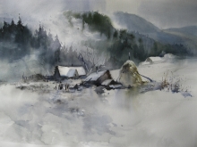 The Urals. Chusovoye Village. Shamanka Rock - watercolors, paper