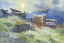Moon Night In Chadakolob, Dagestan - watercolors, paper