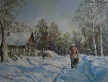 Fetching Water In Winter - oil, canvas