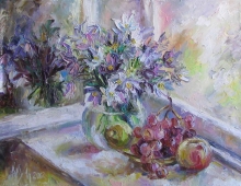 Snowdrops With Fruit At The Window - oil, canvas
