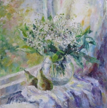 May Lilies At The Window - oil, cnavas