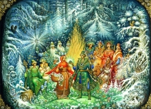 Winter Evening - box, Kholui lacquer painting technique