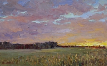 Sunset Over The Field - oil, canvas